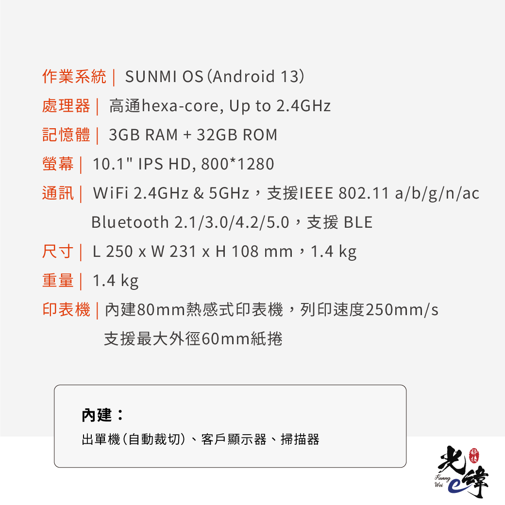 - 內建出單機及客顯,一體成形,輕巧方便攜帶,電源隨插即用